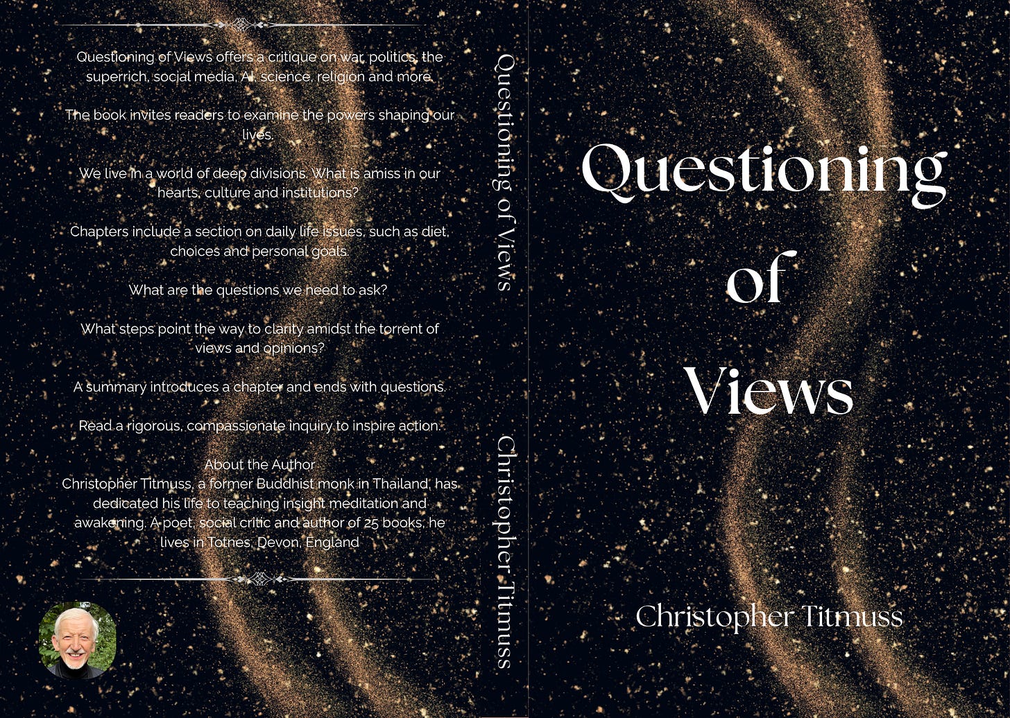 I have recently completed a new book titled QUESTIONING OF VIEWS (360 pages, book size 22.86 cm by 15.24 cm, 9 inches by 6 inches.